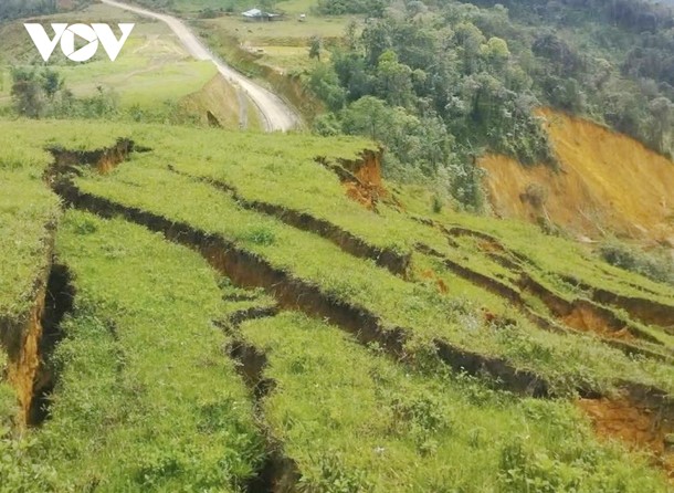 Nhiều vết nứt tiếp tục xuất hiện. Ảnh VOVTỉnh Quảng Nam (cũ) đã thực hiện Nghị quyết số 23/2021/NQ-HĐND về cơ chế, chính sách hỗ trợ sắp xếp ổn định dân cư miền núi. Trong giai đoạn 2021-2025, hơn 3.000 hộ dân đã được sắp xếp, với các phương án và địa điểm tái định cư hợp lý nhằm di dời các hộ nằm trong vùng nguy cơ sạt lở tại các huyện miền núi Bắc Trà My, Nam Trà My, Phước Sơn, Nam Giang, Tây Giang (cũ).