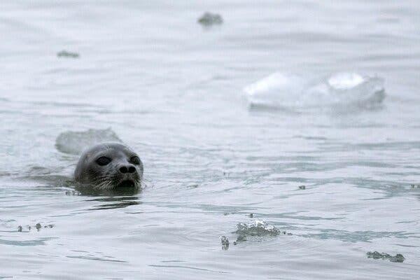 Một con hải cẩu đàn hạc gần quần đảo Svalbard. Ba loài hải cẩu Bắc Cực, vốn sống dựa vào băng biển đang tan dần, đã rơi vào nhóm nguy cấp hơn.Đối với nhiều loài động vật, các mối đe dọa ngày càng gia tăng. Ba loài hải cẩu Bắc Cực, vốn sống dựa vào băng biển đang suy giảm, đã rơi vào nhóm nguy cấp hơn. Hải cẩu trùm đầu chuyển từ nhóm dễ bị tổn thương sang nhóm nguy cấp, trong khi hải cẩu râu và hải cẩu đàn hạc từ nhóm ít được quan tâm sang nhóm gần bị đe dọa. Các loài động vật cần băng biển để nghỉ ngơi, sinh sản và nuôi con. Kit Kovacs, trưởng nhóm chuyên gia về hải cẩu, sư tử biển và hải mã của liên minh bảo tồn, cho biết mặc dù mọi người thường cho rằng hải cẩu có thể dễ dàng di chuyển lên đất liền khi băng tan, nhưng điều đó không đúng.