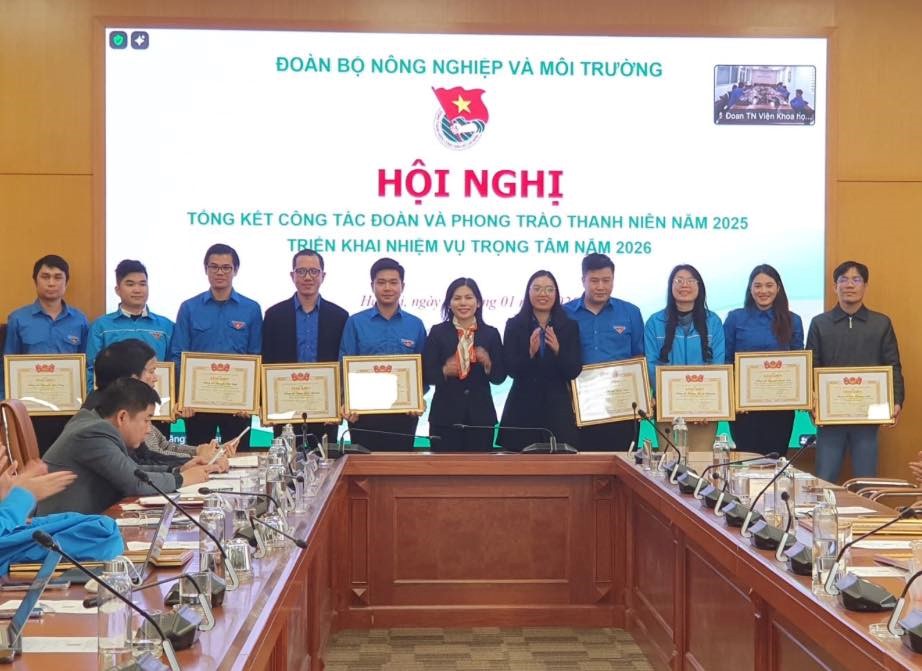Cũng tại hội nghị, Đoàn Thanh niên Bộ Nông nghiệp và Môi trường đã vinh dự đón nhận Cờ thi đua và bằng khen của Đoàn Thanh niên Chính phủ dành cho những tập thể và cá nhân tiêu biểu có những thành tích xuất sắc trong công tác đoàn và phong trào thanh niên năm 2025. Đây chính là động lực để các tập thể, cá nhân tiếp tục phát huy vai trò của mình.