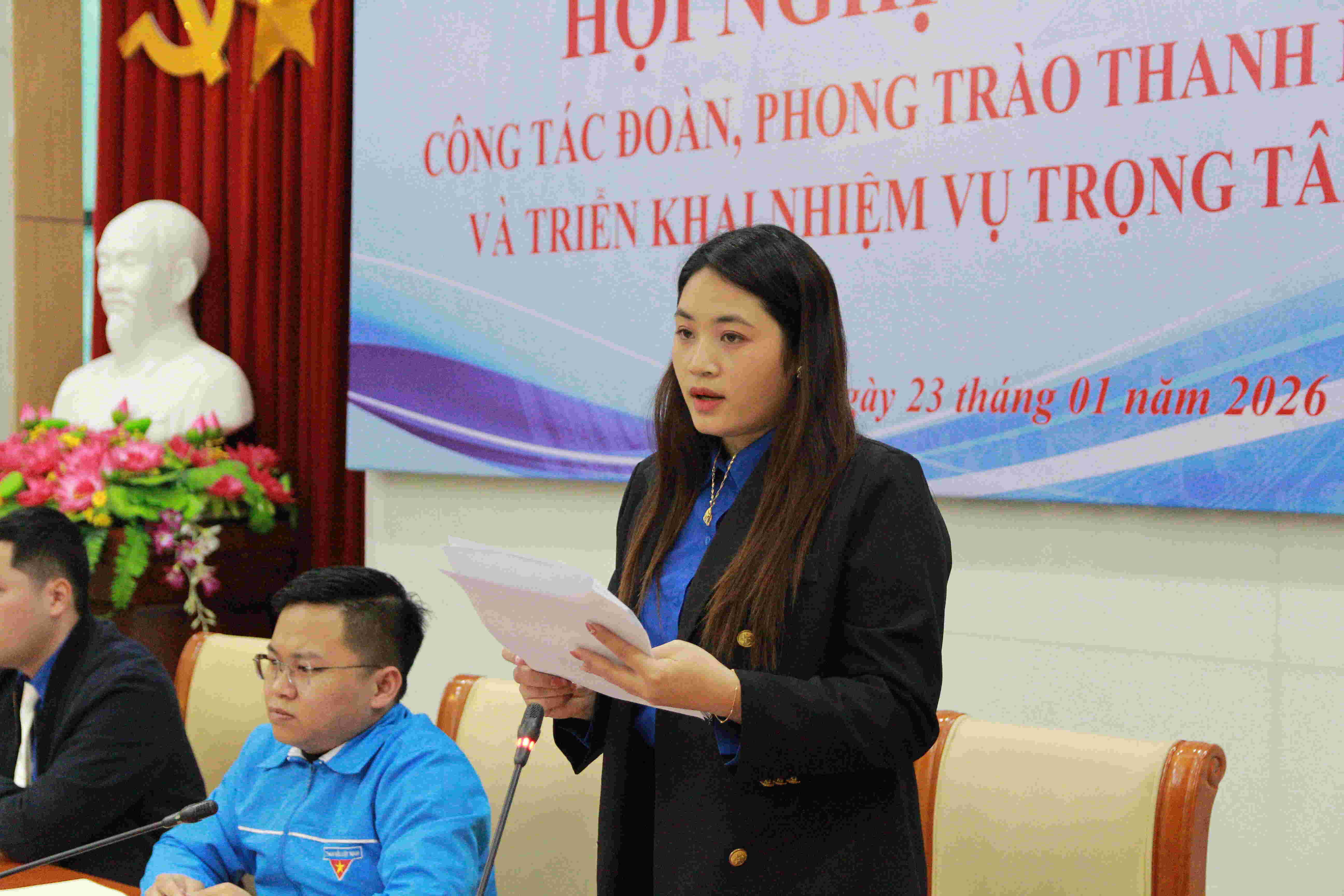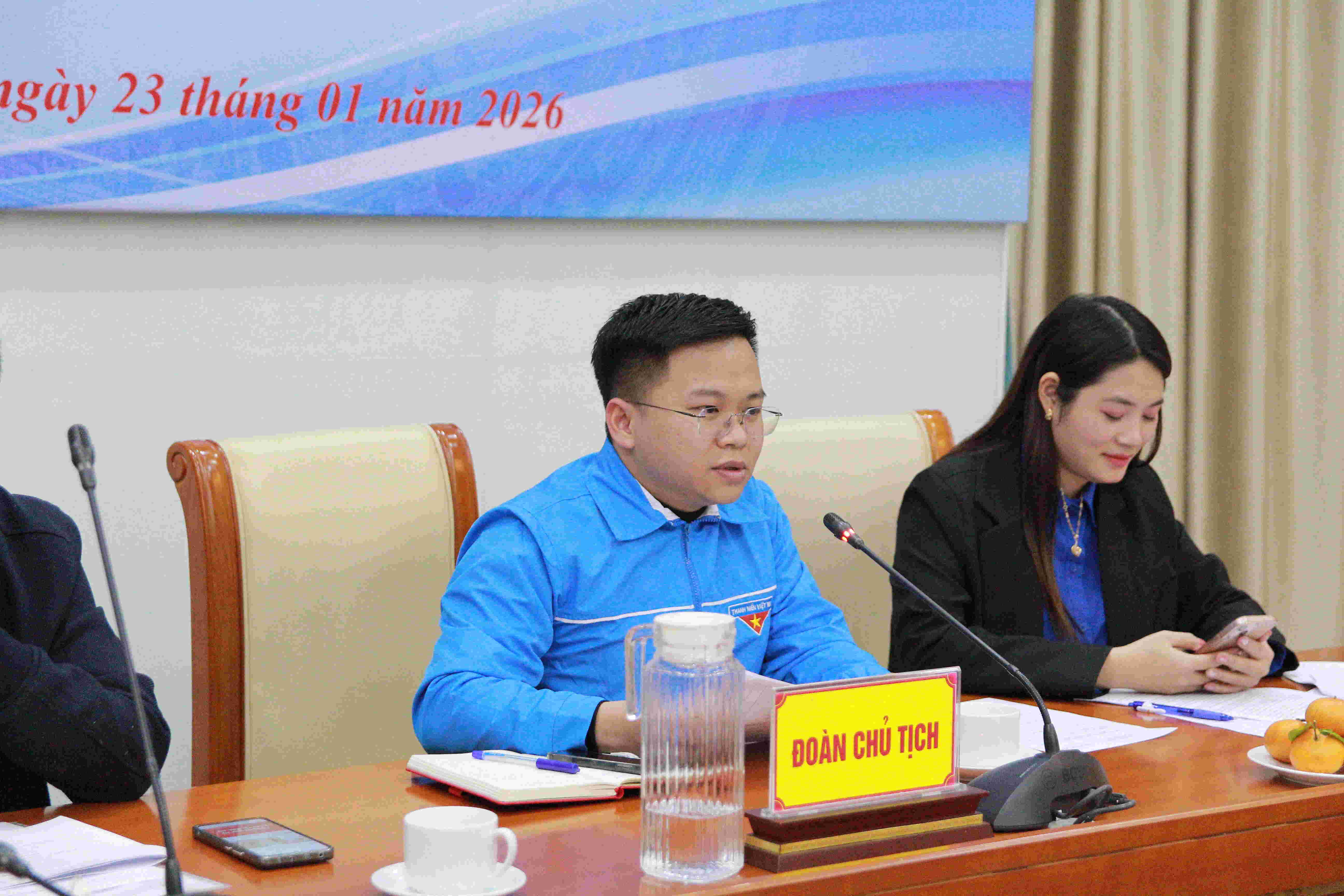 Đồng chí Trần Văn Hùng, Bí thư Đoàn Cục KTTV điều hành Hội nghịBáo cáo nhiệm vụ trọng tâm năm 2026 với chủ đề năm: "Tuổi trẻ Cục KTTV: Bản lĩnh - Tinh gọn - Tiên phong trong Kỷ nguyên vươn mình của dân tộc":