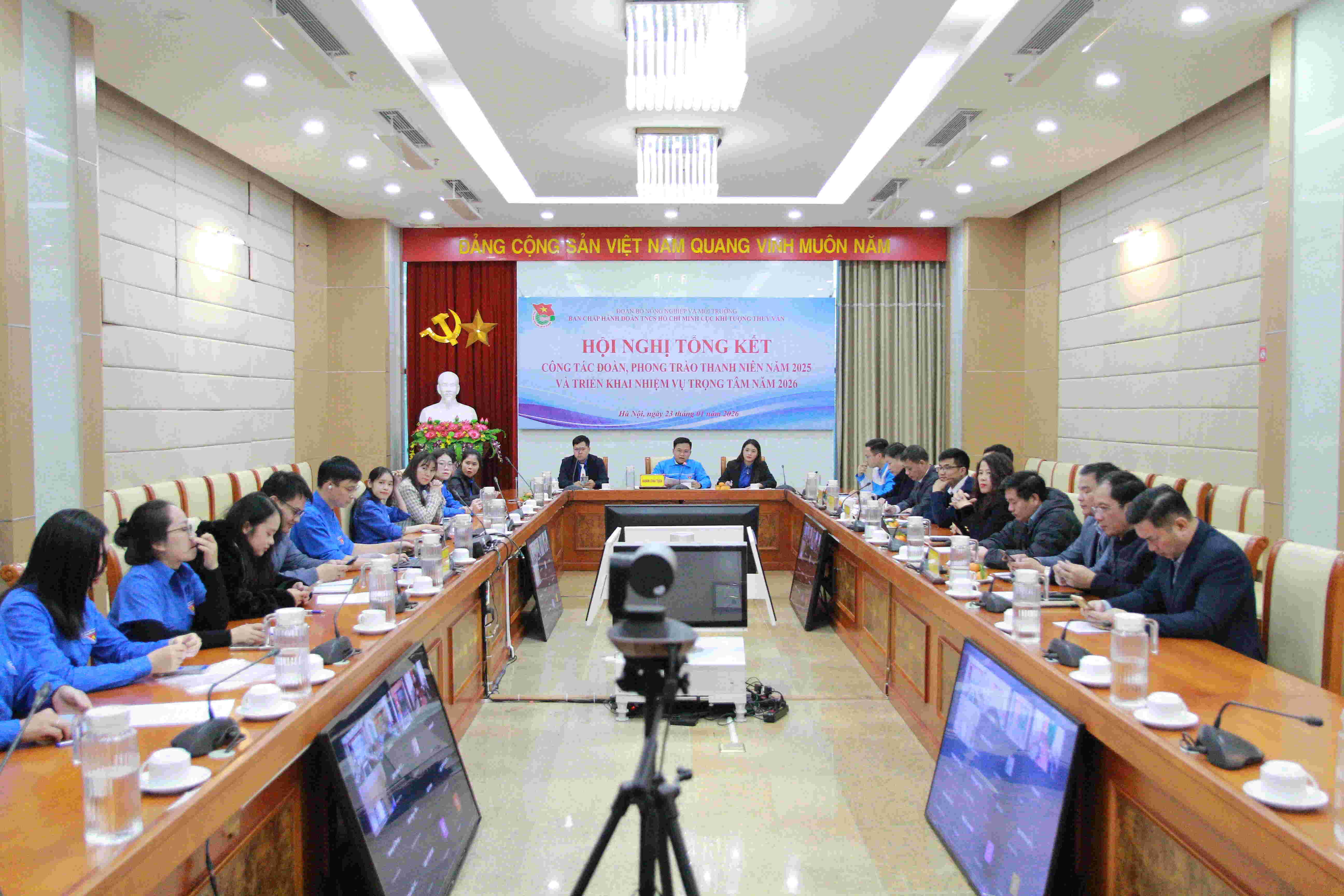 Toàn cảnh Hội nghịThực hiện Chương trình công tác Đoàn và phong trào thanh niên năm 2025 của Ban Chấp hành Đoàn Thanh niên Cục Khí tượng Thủy văn; được sự quan tâm, chỉ đạo của Đảng ủy Cục Khí tượng Thủy văn, Đoàn Bộ Nông nghiệp và Môi trường, các hoạt động phong trào thanh niên của Cục triển khai tổ chức thực hiện bài bản, chuyên nghiệp hơn. Các hoạt động Đoàn được các chi đoàn trựcthuộc triển khai đồng bộ và hiệu quả gắn với nhiệm vụ chuyên môn của Bộ, ngành.