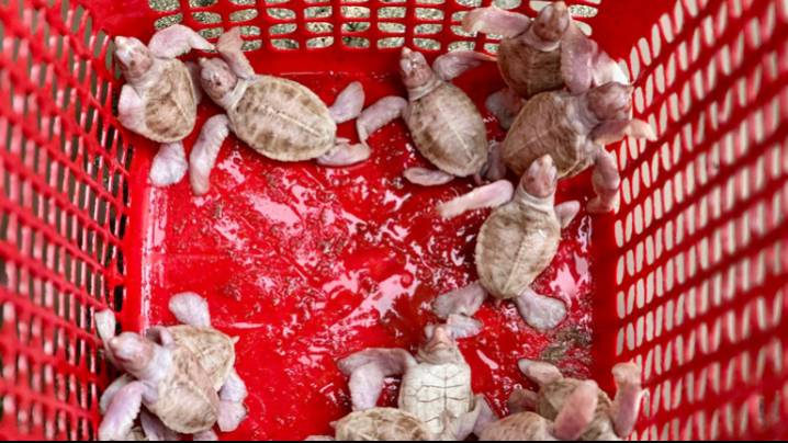 Ban Quản lý Vườn quốc gia Côn Đảo (tỉnh Bà Rịa – Vũng Tàu) cho biết, ngày 27/10 vừa qua, tại khu vực Hòn Cau, các nhân viên bảo tồn đã ghi nhận một sự kiện đặc biệt hiếm gặp: 17 cá thể rùa bạch tạng chào đời trong cùng một tổ rùa biển.