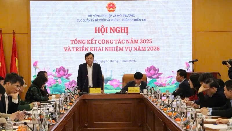 Thứ trưởng Nông nghiệp và Môi trường Nguyễn Hoàng Hiệp chỉ đạo hội nghị.Ngày 30/1, Cục Quản lý đê điều và Phòng, chống thiên tai (Bộ Nông nghiệp và Môi trường) tổ chức Hội nghị tổng kết công tác năm 2025 và triển khai nhiệm vụ năm 2026.