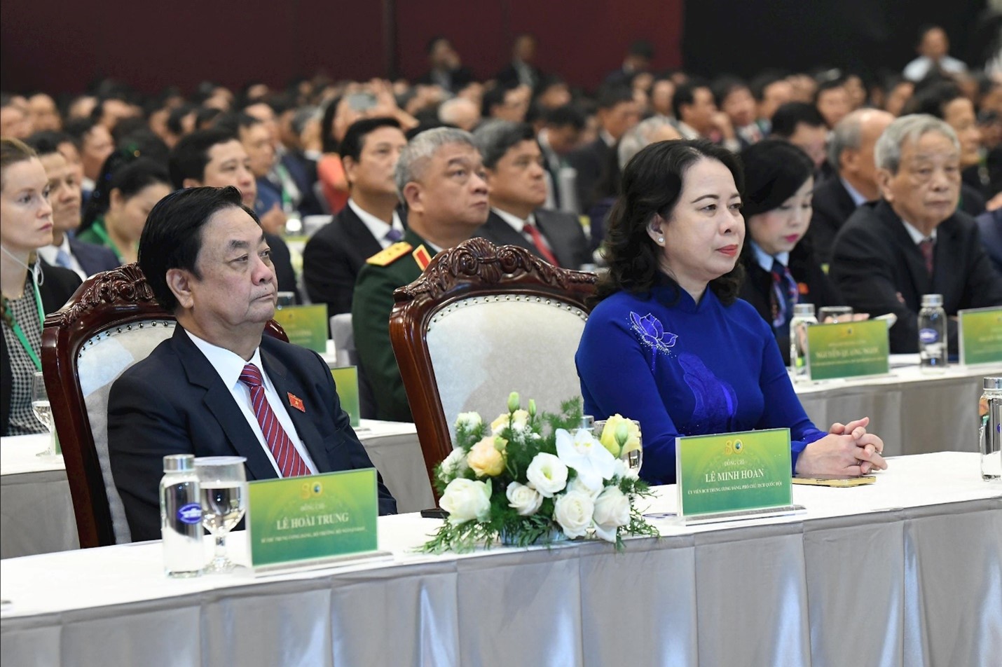 Phó Chủ tịch nước Võ Thị Ánh Xuân; Phó Chủ tịch Quốc hội Lê Minh Hoan dự Lễ kỷ niệm 80 năm ngành Nông nghiệp và Môi trường. Ảnh: Mạng xã hội