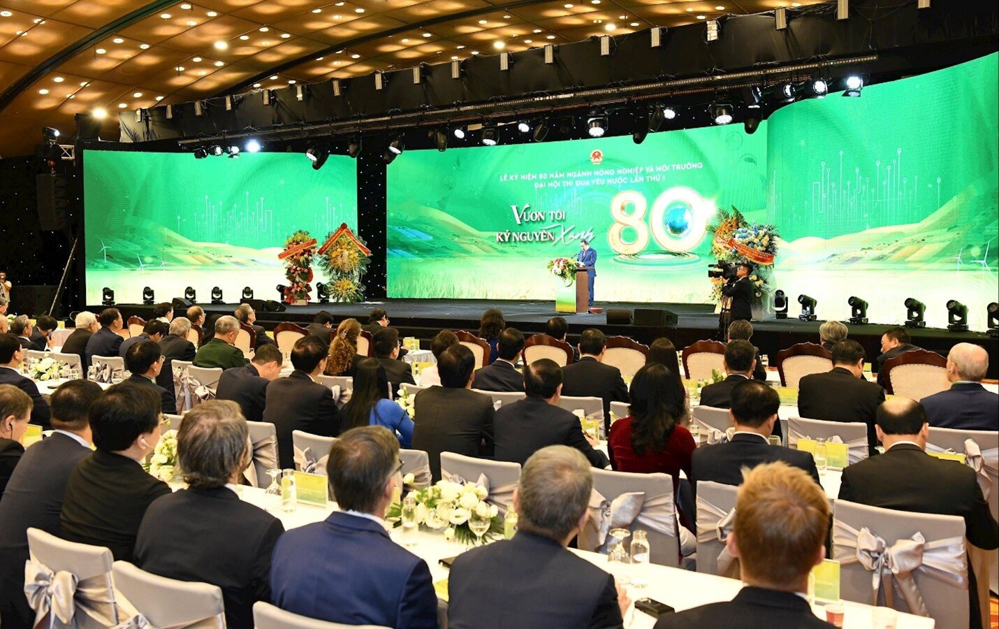 Tổng Bí thư Tô Lâm và các đại biểu dự Lễ kỷ niệm 80 năm ngành Nông nghiệp và Môi trườngẢnh: Mạng xã hộiQua tám thập kỷ, ngành Nông nghiệp và Môi trường đã khẳng định vai trò chiến lược trong bảo đảm an ninh lương thực, sinh kế hàng chục triệu nông dân, bảo vệ tài nguyên thiên nhiên, đa dạng sinh học và cân bằng sinh thái; đồng thời góp phần giữ vững ổn định chính trị, an sinh xã hội và bảo vệ môi trường sống của nhân dân. ngành nông nghiệp đã trở thành trụ đỡ của nền kinh tế quốc dân, đưa Việt Nam từ nước thiếu ăn trở thành một trong những quốc gia xuất khẩu nông sản hàng đầu thế giới.